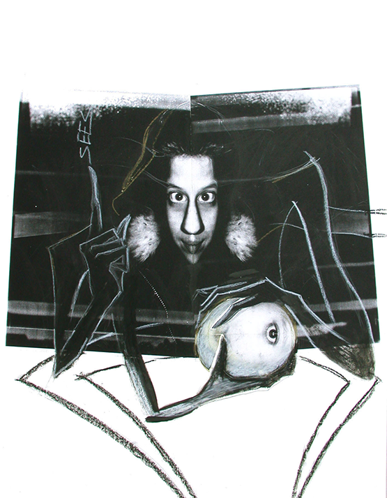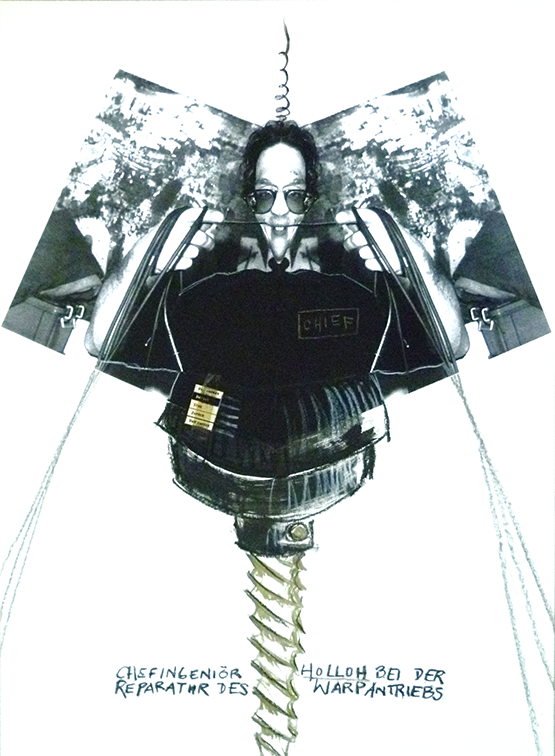 Spiegelt man Gesichtshälften entlang ihrer Längsachse, entstehen die sonderbarsten Aliens. "Deep Click 9" war in den 90er Jahren ein bekannter Treffpunkt von Aliens aus der ganzen Galaxis. Die Serie von Collagen ist Vorläufer und Impulsgeber der aktuelleren 90er-Serie Wer sich erinnern kann…